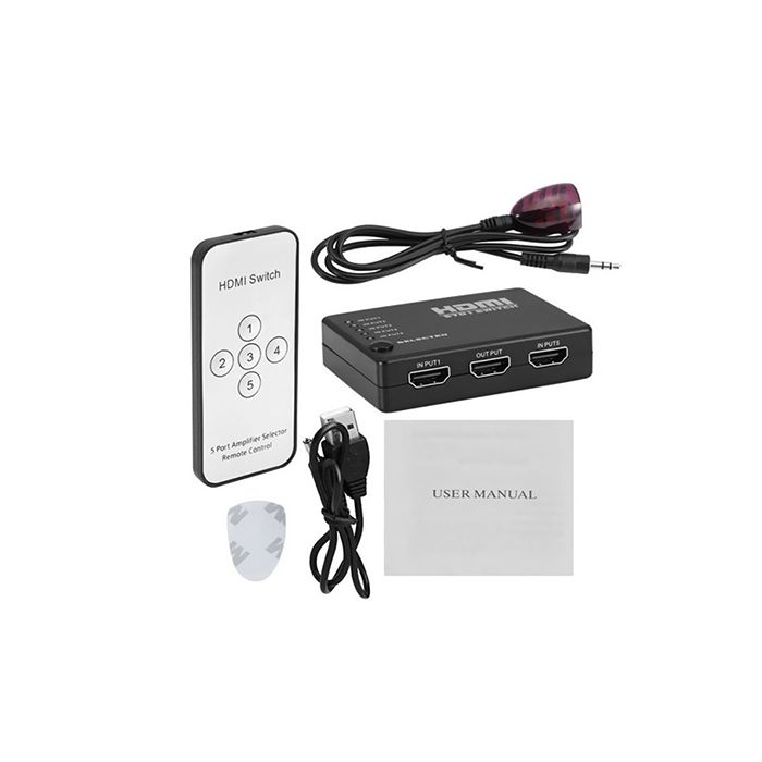 This 5-port HDMI switch not only has the key-press-switching function, but also has the IR remote control and intelligent function. When any HDMI source devices are on and outputting Live HDMI signals to the switcher, the switcher will automatically select the Live HDMI input.
