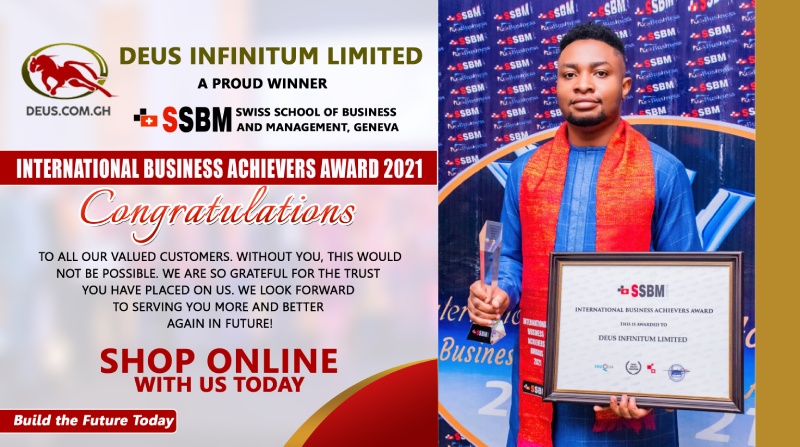 International Business Achievers Award Ghana 2021 revolves around merit and extensive research conducted by M-GIBES and SSBM Switzerland. We were awarded for its excellent practices and incredible customer service provision in the context of supply and delivery of products on its E-commerce Sales Channels We.com.gh.