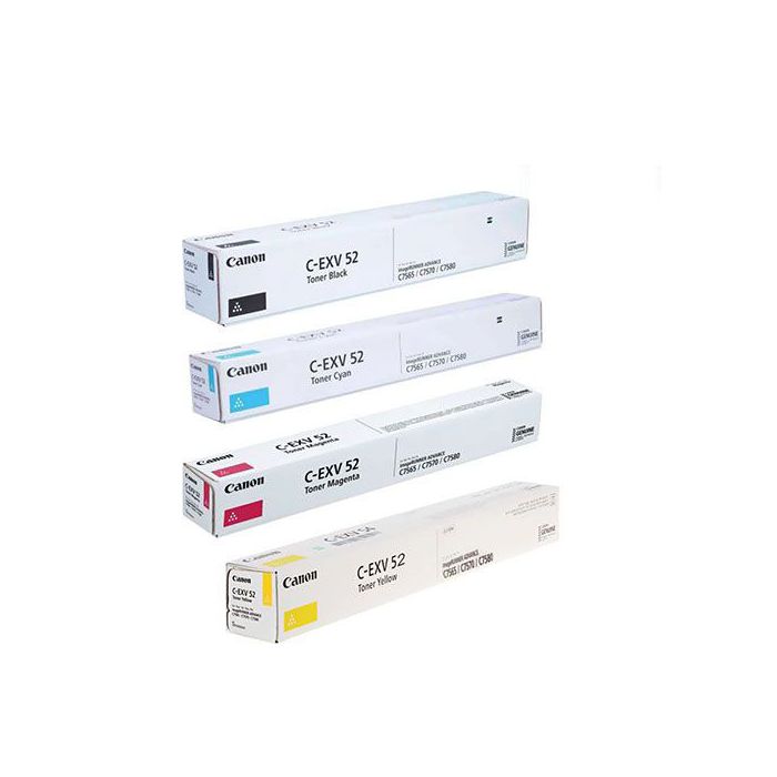 Canon C-EXV 52 Original Toner Cartridge 1 Set | Black | Cyan | Magenta | Yellow Full Set Multipack For Canon IRC2570i, IRC7565i, IRC7570i, IRC7580i, DX C7765i, DX C7770i, DX C7780i Copiers