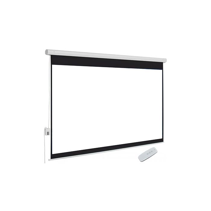 It is operated by an electric motor that raises and lowers the screen via remote control or wall switch. Some Electric projector screens have a simple plug-and-play design, while others like a ceiling recessed screen, require significant installation.