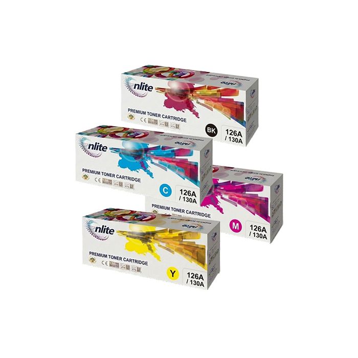 Upgrade your printing with the Enlite 126A / 130A Compatible LaserJet Toner Cartridge Full Set Multipack (Black, Cyan, Magenta, Yellow).