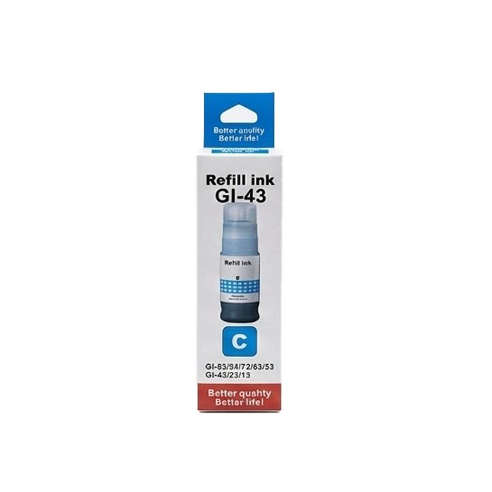Get vibrant and rich cyan colour prints with the Canon GI‑43C Cyan Compatible Ink Refill — perfect for photos, graphics, and coloured documents.