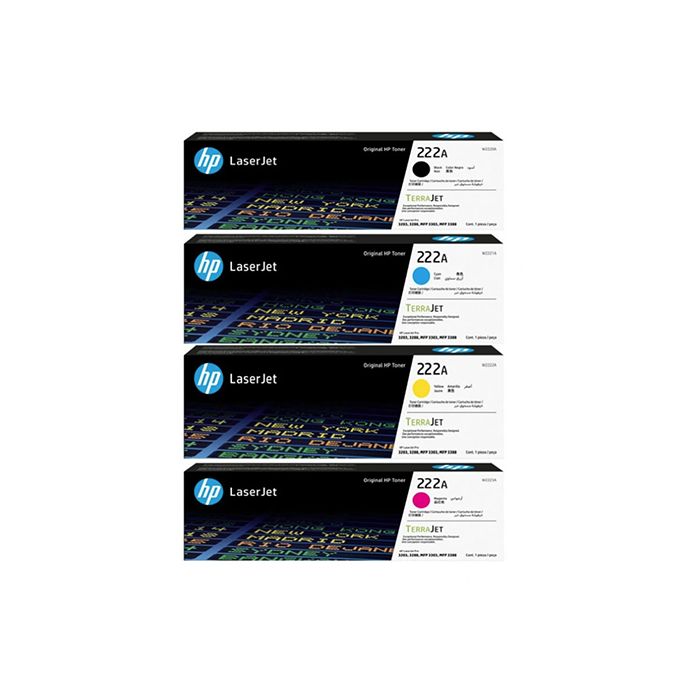 Complete Color Set: Includes Black (W2220A), Cyan (W2221A), Magenta (W2223A), and Yellow (W2222A) cartridges for full-color printing.