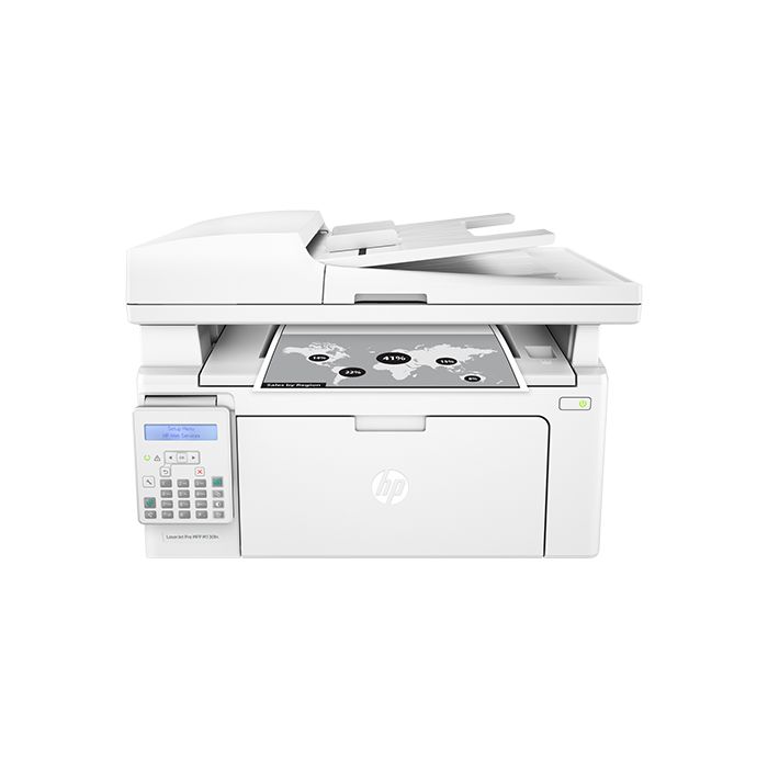 Simplify your setup with the compact LaserJet Pro M130fn All-in-One Monochrome Laser Printer from HP, which packs in printing, scanning, copying, and faxing capabilities in a single unit.