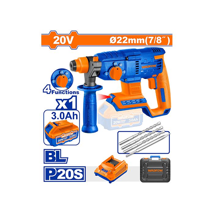 Wadfow 20 V Cordless Brushless Rotary Hammer WLM15225 – Heavy-Duty Masonry Drill for Concrete, Brick & Stone