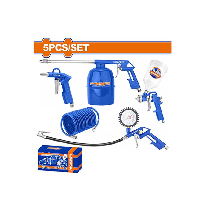 The Wadfow WAX1505 5-Piece Air Tools Set is a versatile pneumatic accessory kit designed for painting, cleaning, inflating, and general workshop tasks. This set includes a recoil air hose, air spray gun, air washing gun, and air blow gun, making it ideal for use with air compressors in garages, workshops, and industrial environments. With high-capacity spray and wash guns and a flexible 5-meter recoil hose, this kit delivers convenience, efficiency, and professional results.