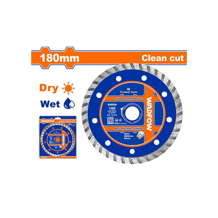 The Wadfow WDC3K04 Turbo Diamond Disc is a high-efficiency 7-inch cutting blade designed for fast, smooth, and precise cutting of tiles, stone, marble, granite, and concrete.