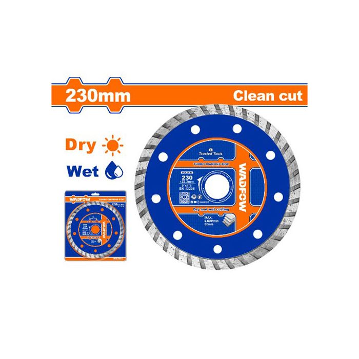 The Wadfow WDC3K05 Turbo Diamond Disc is a high-performance 9-inch cutting blade engineered for fast, precise, and smooth dry cutting of tiles, marble, granite, brick, and concrete.