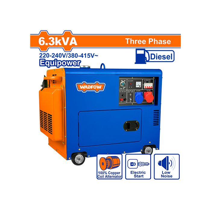 Wadfow WDG2A50DT 5.6/6.3kVA Three-Phase Silent Diesel Generator – 418cc 9HP Engine, Electric Start, Copper Coil Alternator