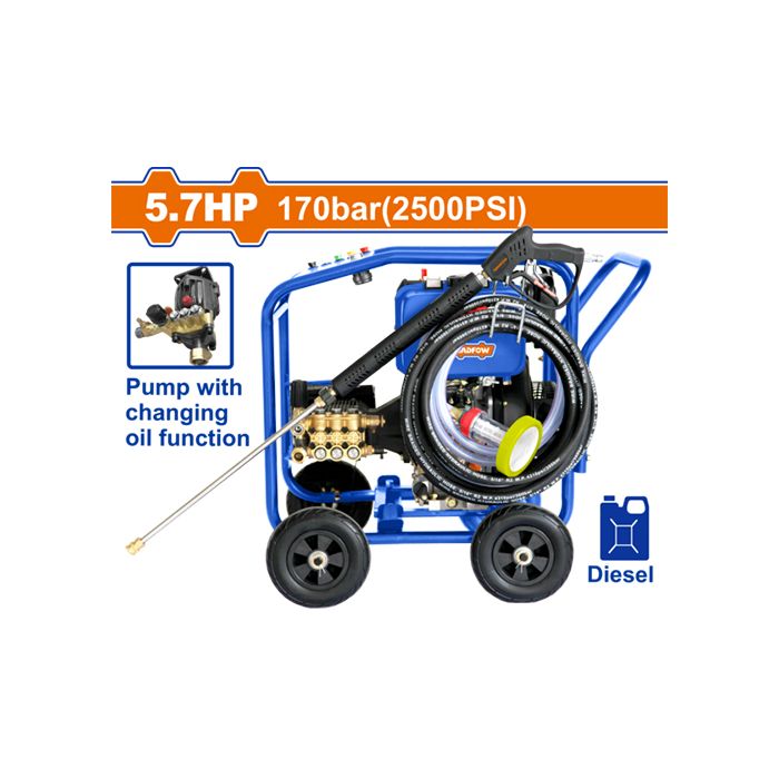Wadfow WDPS1A25 Diesel High-Pressure Washer – 5.7HP Engine, 170Bar Pressure, 4.0GPM Flow, Oil-Change Pump