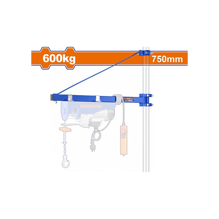 The Wadfow WETS1A01 Rotary Hoist Frame is a heavy-duty lifting support frame designed to work with Wadfow electric hoists and winches. It allows safe rotating, positioning, and lifting of loads in workshops, warehouses, construction sites, and garages.