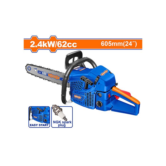 The Wadfow WGC1562 Gasoline Chainsaw is a high-performance 62cc petrol chainsaw designed for large-scale wood cutting, tree felling, and forestry work. With a powerful 2.4kW two-stroke engine and a long 24-inch cutting bar, this chainsaw delivers the strength and cutting depth needed for professional and heavy-duty outdoor applications.