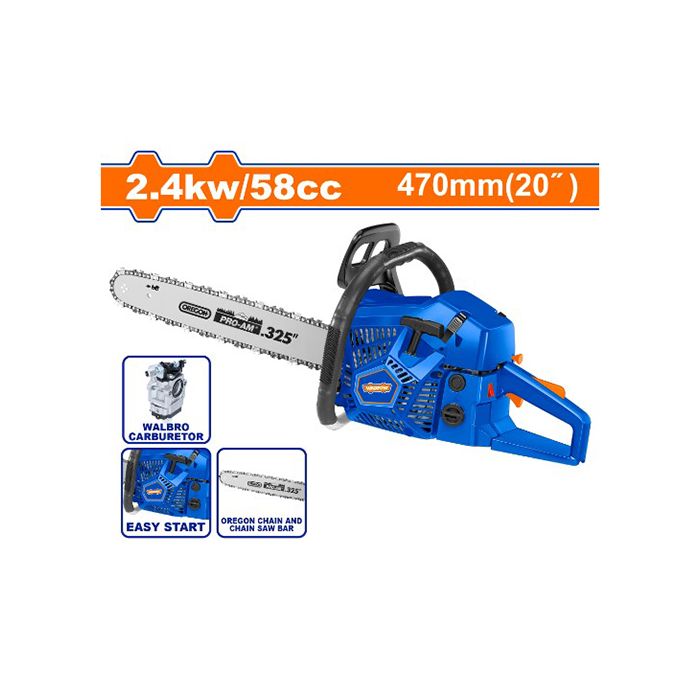 Experience powerful, smooth cutting with the Wadfow WGC2558 Gasoline Chainsaw — equipped with Oregon performance and built for tough jobs.