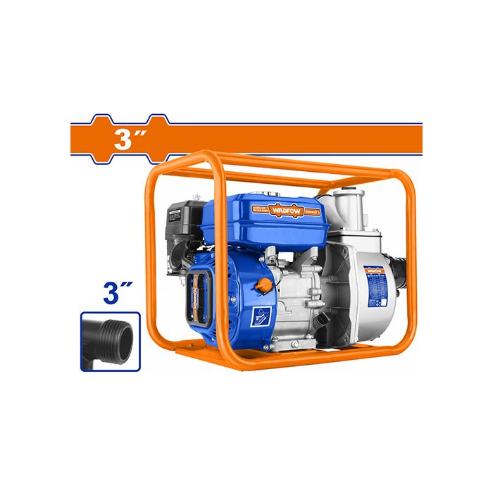 The Wadfow WGW1A31 Gasoline Water Pump is a high-capacity solution for irrigation, construction, drainage, and large-scale water transfer tasks. Powered by a 7.0HP gasoline engine with 208cc displacement, this pump delivers a strong 1000 litres per minute flow rate with a maximum head lift of 27m. Its 3-inch suction and discharge ports ensure fast and efficient water movement, while the recoil starting system provides reliable operation in diverse working conditions.