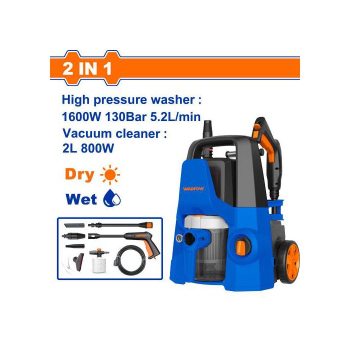 Wadfow WHP4A16 2-in-1 Pressure Washer & Vacuum Cleaner – 1600W Washer, 800W Vacuum, 130Bar, HEPA Filter