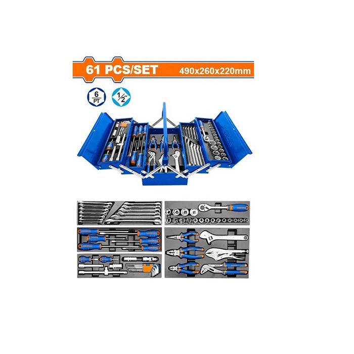• Complete 61‑piece tool set packed in a sturdy tools chest