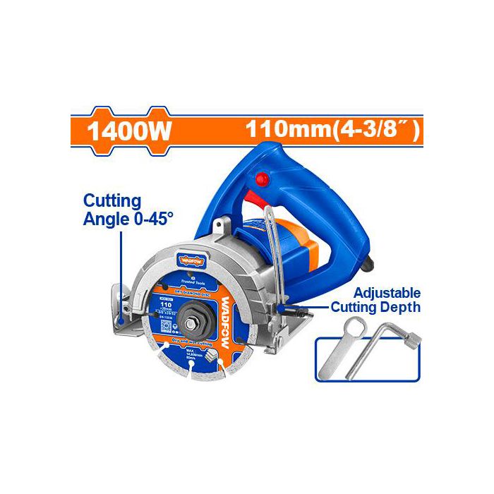The Wadfow WMR15141 Marble Cutter is a precision cutting tool designed for professional tile, marble, and stone work. With a 1400 W high-power motor and adjustable bevel cutting, this cutter delivers clean, precise cuts up to 34 mm thick, making it ideal for home renovation, construction, and professional stonework.