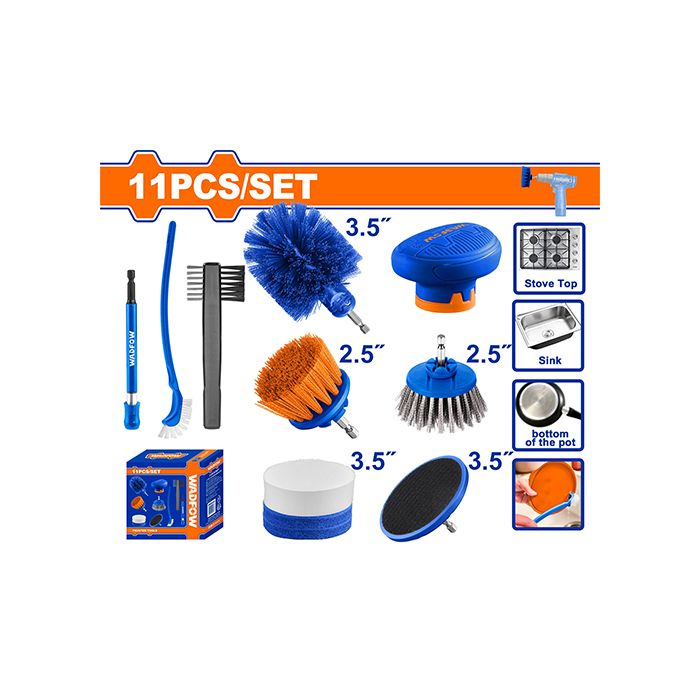 The Wadfow WND5511 Cleaning Brush Set is a versatile 11-piece drill-powered cleaning kit designed to handle everything from delicate surfaces to stubborn grime. With soft, medium, wire brushes, sponge pads, scour pads, a backer pad, and a scrub handle, this set converts your electric drill into a high-performance cleaning tool for home, workshop, automotive, and industrial use.