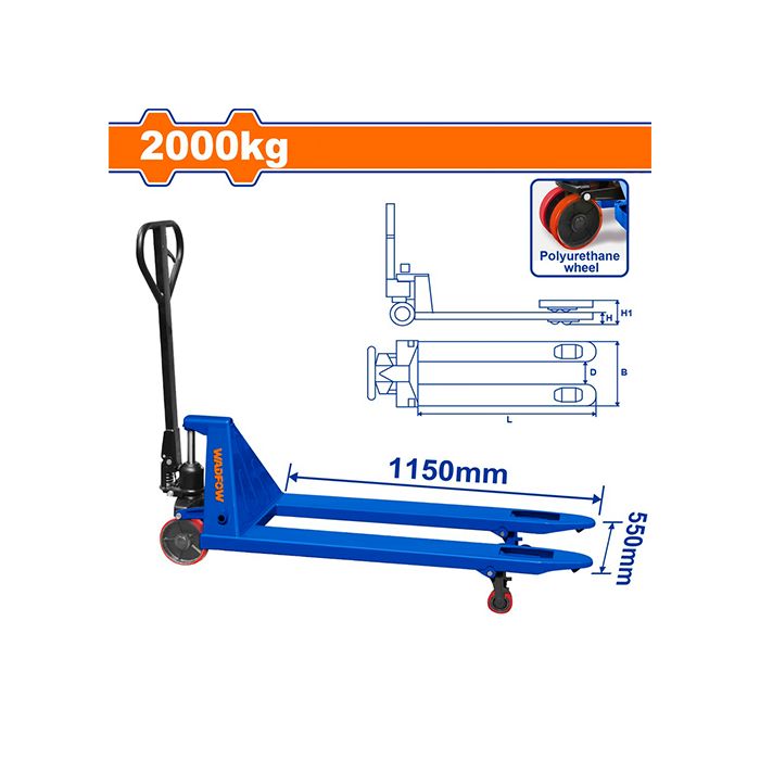Make heavy pallet movement smoother and safer with the Wadfow WNH1R20 Hand Pallet Truck — engineered for strength, reliability, and everyday performance.