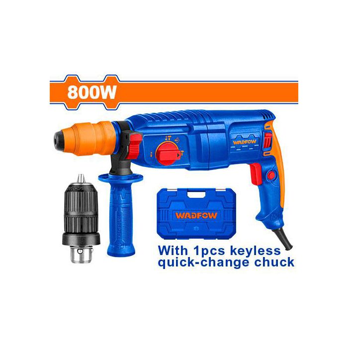 The Wadfow WRH1D26-2 Rotary Hammer is a rugged and powerful electric hammer drill engineered to deliver high-impact drilling, chiseling, and hammering performance in the toughest materials including concrete, masonry, stone, and brick. Built for professional builders, masons, contractors, and serious DIYers, this rotary hammer combines durable construction with smooth operation — making heavy-duty drilling, anchor installation, chiseling, and demolition work more efficient and comfortable.