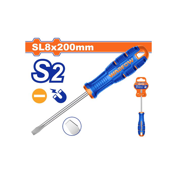 The Wadfow WSDA288 Slotted Screwdriver is a high-quality hand tool designed for precise screwing, loosening, and tightening of slotted screws in electrical, mechanical, and DIY applications. Engineered for durability and comfort, this screwdriver is ideal for professional technicians, electricians, and home users.