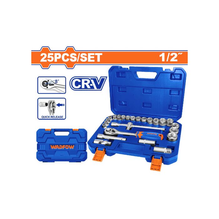 Be ready for automotive and workshop tasks with the Wadfow WST2D25 25‑Piece 1/2″ Socket Set — engineered for strength, precision, and everyday use.