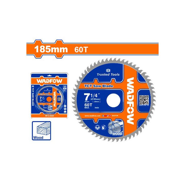 Wadfow WTC1K03 185mm TCT Saw Blade – 60T Ultra-Fine Wood Cutting Blade with Arbor and Reduction Ring