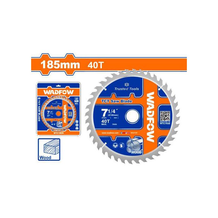Wadfow WTC1K05 185mm TCT Saw Blade – 40T Professional Wood Cutting Blade with Arbor and Reduction Ring