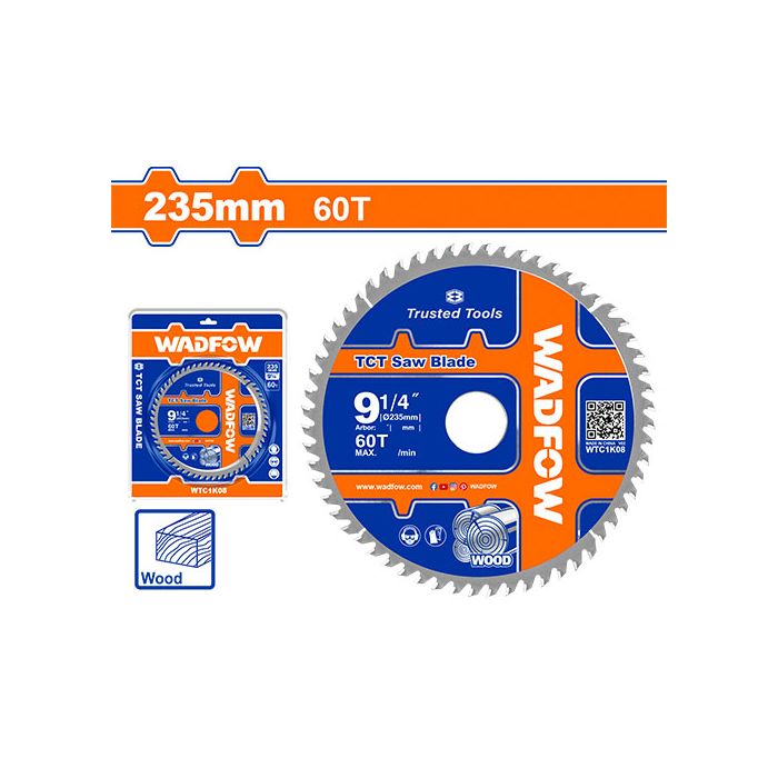 The Wadfow WTC1K08 TCT Saw Blade is a high-precision 9-1/4" wood cutting blade designed for smooth, clean, and accurate cuts in softwood, hardwood, plywood, and laminated boards.