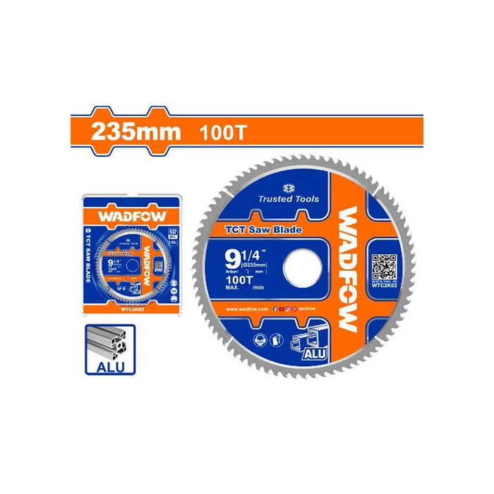 Wadfow WTC2K02 235mm TCT Saw Blade – 100T Precision Aluminum Cutting Blade with Arbor & Reduction Rings