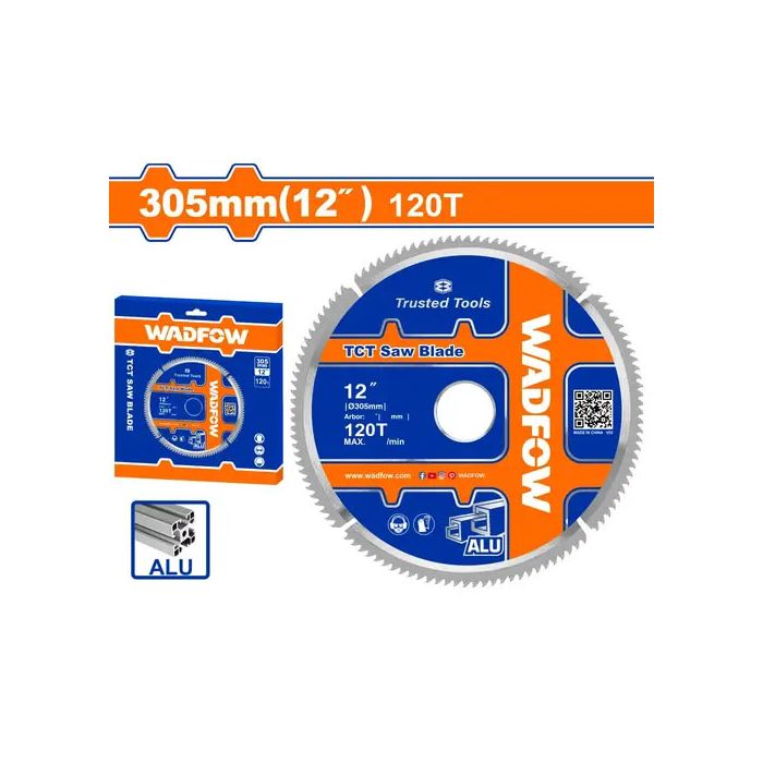 The Wadfow WTC2K06 TCT Saw Blade is a 12" high-precision blade designed for clean, smooth, and accurate cuts on aluminum and non-ferrous metals.