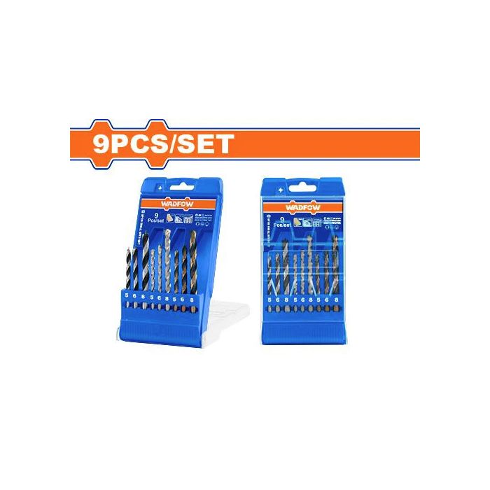 The Wadfow WTD6B01 9-Piece Drill Bits Set is a versatile drilling solution designed for DIY users, technicians, and professional craftsmen who work with different materials. This set includes HSS twist bits for metal, masonry bits for concrete and brick, and wood drill bits — all in the most commonly used sizes.