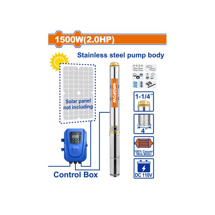 Wadfow WWPDDC05 2HP Solar Deep Well Pump – 110V, 111m Head, 6.5m³/h Flow, 4-Inch Stainless Steel Body