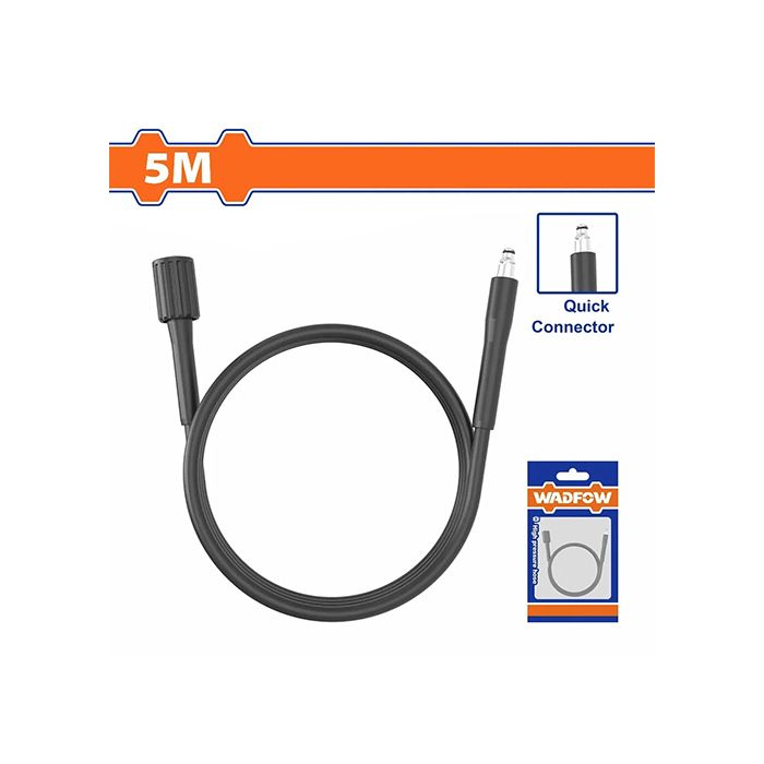 The Wadfow WXN3915 High-Pressure Hose is a durable and flexible replacement hose designed for Wadfow high-pressure washers. With a 5-meter length and a quick connector fitting, it allows fast, secure connection and extended reach for comfortable cleaning. Made from strong PVC material, this hose is ideal for high-pressure water flow and is fully compatible with WHP1A11, WHP3A12, WHP3A14, and WHP3A18 models.